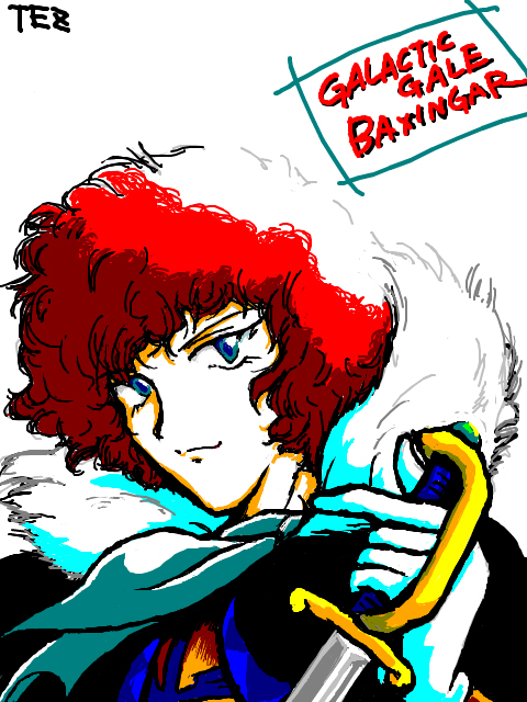 でも多分剣がおかしい(描き終わってから気がつく)。ナックルガード(とは言わないか)の向きが・・・。 そして正方形のフレームに慣れているので上が余ってしょうがないからタイトル書いてごまかす(笑)。