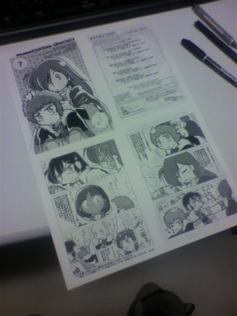 開場前にご挨拶に来てくださった某T佐馬…ちがうT様と東京都青少年育成条例改正案を憂えてみたり(コレについてはワタクシはまだまだ勉強不足ですので何とも言えないところがございますが、基本的には改正反対でありますよ。大阪とかも動き出すとか言ってるので今のうちに学んでおきましょう)、「全部1冊ずつ下さい」と言われて今日に限ってその額を事前にメモっておかなかったのでワタワタはしました。